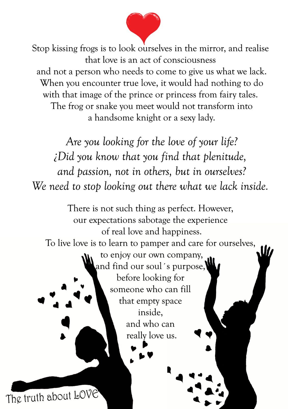 Among other academic certifications and awards, I love people and I have dedicated my life to help them to love and be loved, as they deserve.